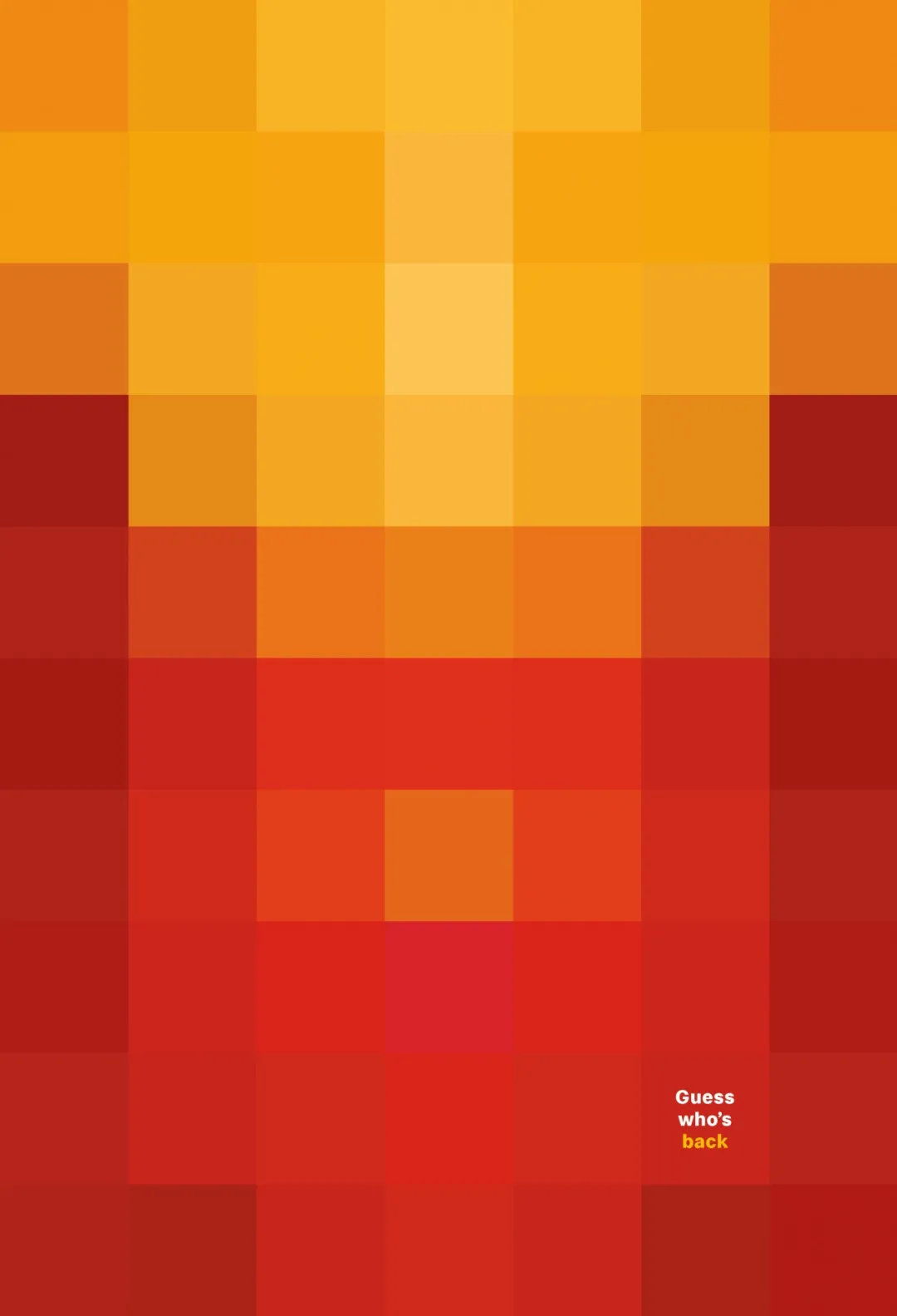 四副海報被馬賽克占滿,整個畫面中只有一句簡單的廣告語:“Guess who's back”(猜猜誰回來了),以呼應(yīng)麥當(dāng)勞餐廳在法國重新開業(yè)。麥當(dāng)勞大膽采用「No Logo」系列海報以一個提問與大眾展開互動:你能猜到它們分別是哪幾款產(chǎn)品嗎?