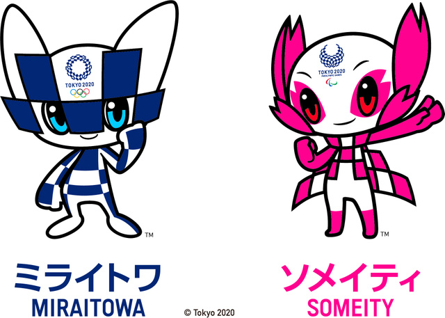 2020年東京奧運會吉祥物與會徽一致,融合了日本傳統(tǒng)“組市松紋”,被命名為“miraitowa”,意為“未來(mirai)”和“永遠(yuǎn)(towa)”。而粉色的殘奧會吉祥物則被命名為“someity”,將具有代表性的日本櫻花“染井吉野”與英文“so mighty(強有力)”結(jié)合在了一起?!癿iraitowa”和“someity”均被設(shè)定為生活在數(shù)字世界里的人物,可使用互聯(lián)網(wǎng)在數(shù)字世界與現(xiàn)實世界之間自由往來。其中“miraitowa”的特技為瞬間移動, “someity”則可以使用超能力。