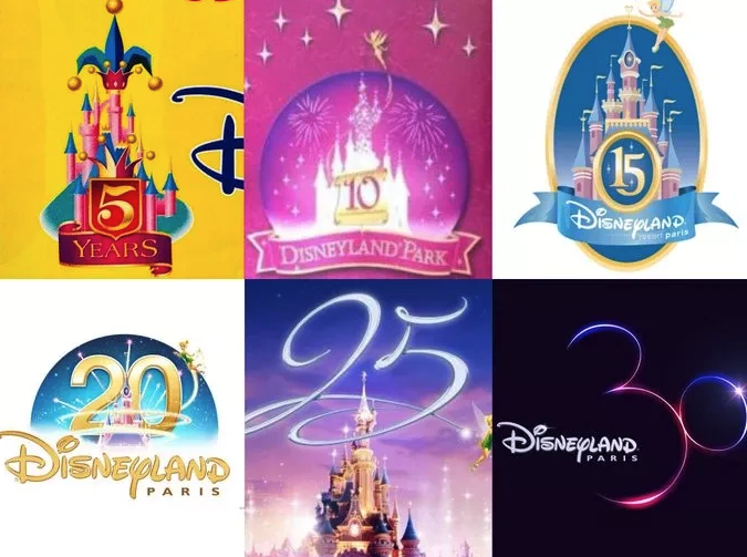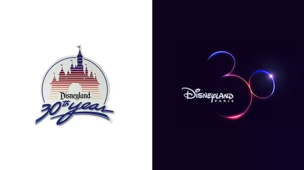 對比近些年不同地區(qū)的迪士尼樂園周年紀(jì)念標(biāo)志,巴黎迪士尼樂園30周年的紀(jì)念標(biāo)志更加簡潔且具有代表性。