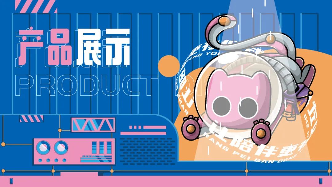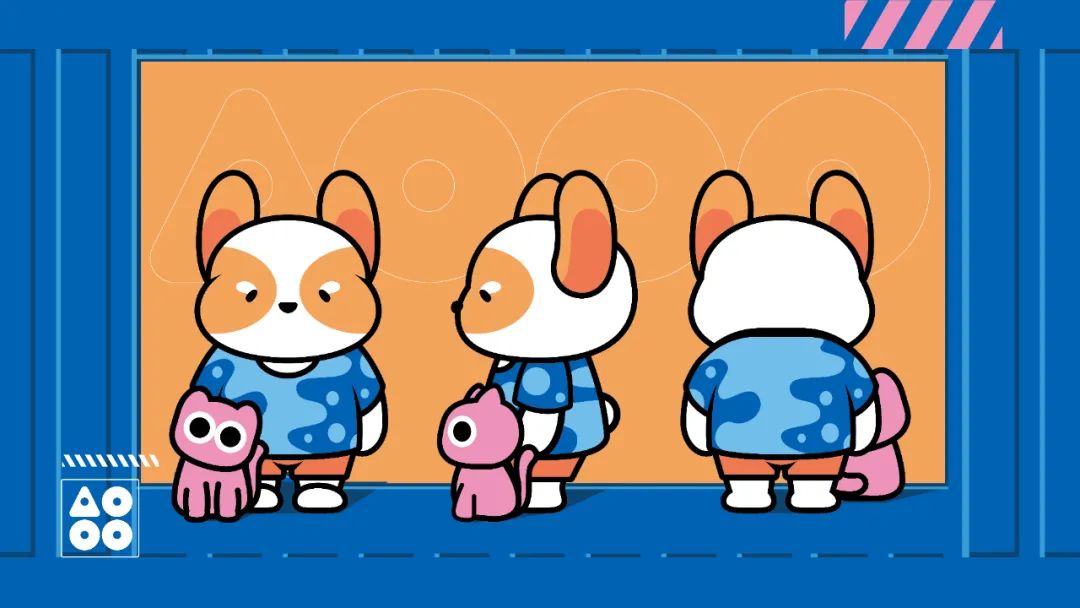 品牌IP以一個法斗犬作為靈感,設計了胖乎乎的小臉,豎立起來的耳朵,身穿一身迷彩服裝。旁邊還搭配了一只粉色的可愛小貓咪,設計搭配簡約。