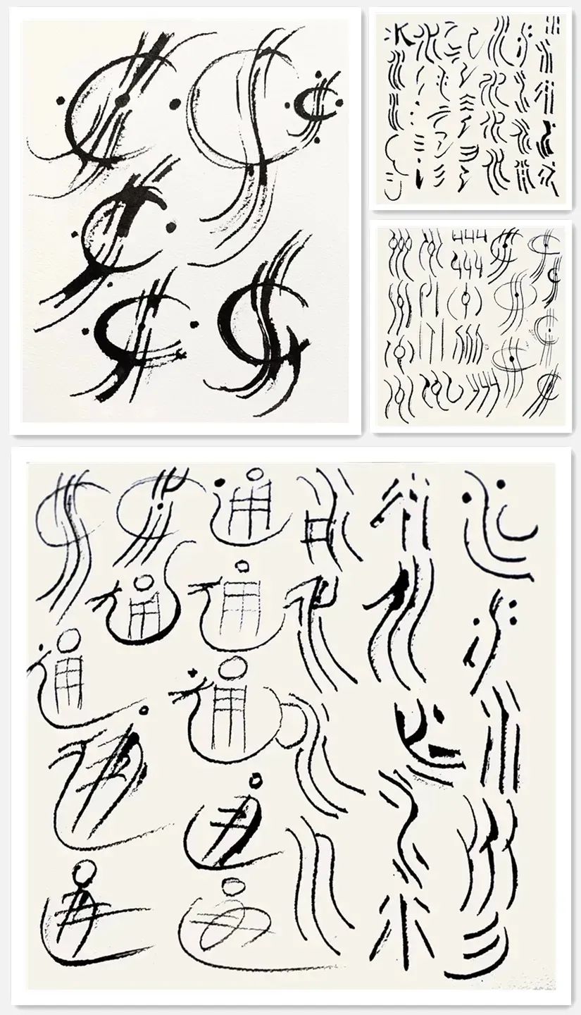 看似簡單的幾個筆畫,韓美林老師采用了書法與繪畫結合,創(chuàng)作出一道意在呈現(xiàn)生氣和活力的水圖形,感受一下他的創(chuàng)作手稿。