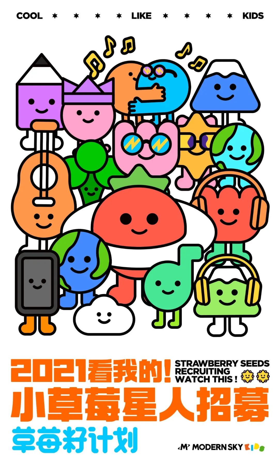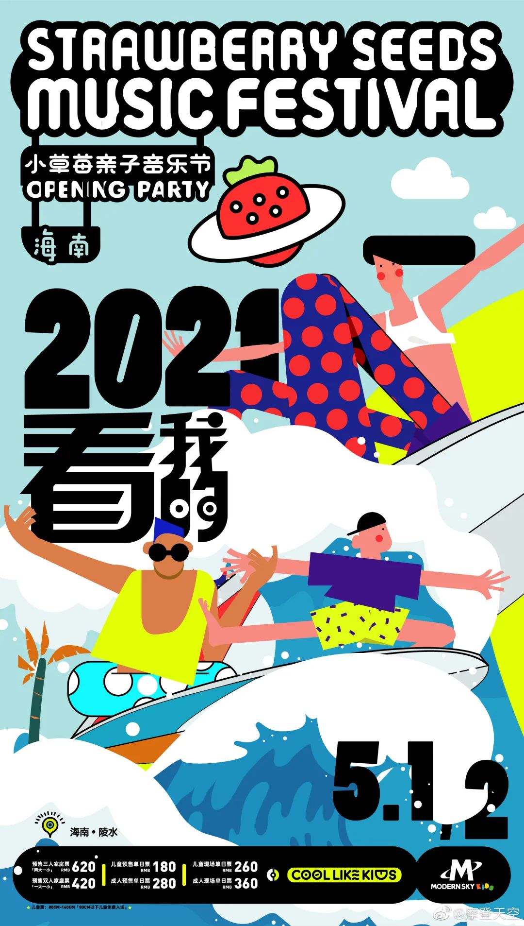 同時小草莓親子音樂節全年主題「2021,看我的!」也公布了海報以沖浪的姿態,展現出活潑開朗的小朋友~