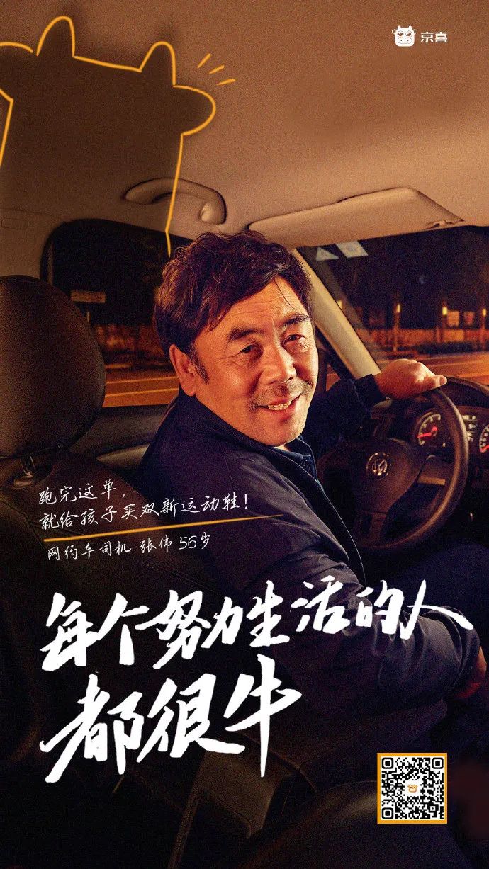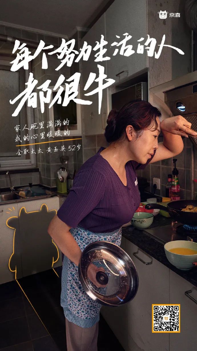 京喜是京東旗下與拼多多、淘寶特價版,定位一樣的一款社交電商平臺APP,以玩法加福利精準(zhǔn)滲透用戶,這次還推出了一組“平凡故事”海報,海報展示了平凡生活中的每一個小人物,創(chuàng)業(yè)者、外賣員、上班族、小攤主、全職太太...每個人的身影都是牛方方的輪廓,配上相應(yīng)的標(biāo)語,體現(xiàn)出京喜的主旨:為每個努力生活的人帶去更好的生活!