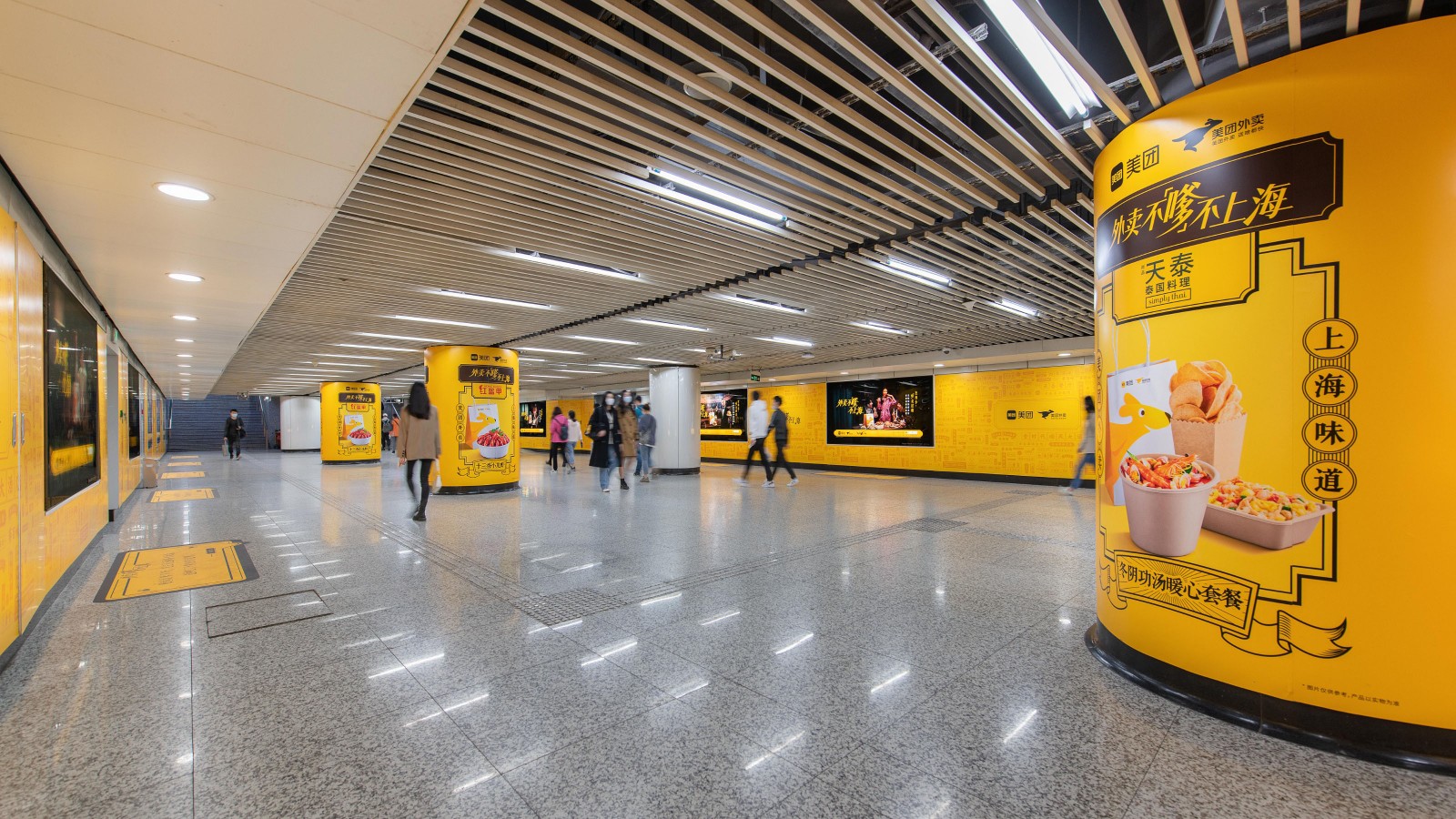 聚焦于一個好的平臺進行爆發式傳播是美團外賣做的第二步。美團外賣這次活動也將目光鎖定在人流量爆棚的徐家匯地鐵站,全方位地搞事情了!