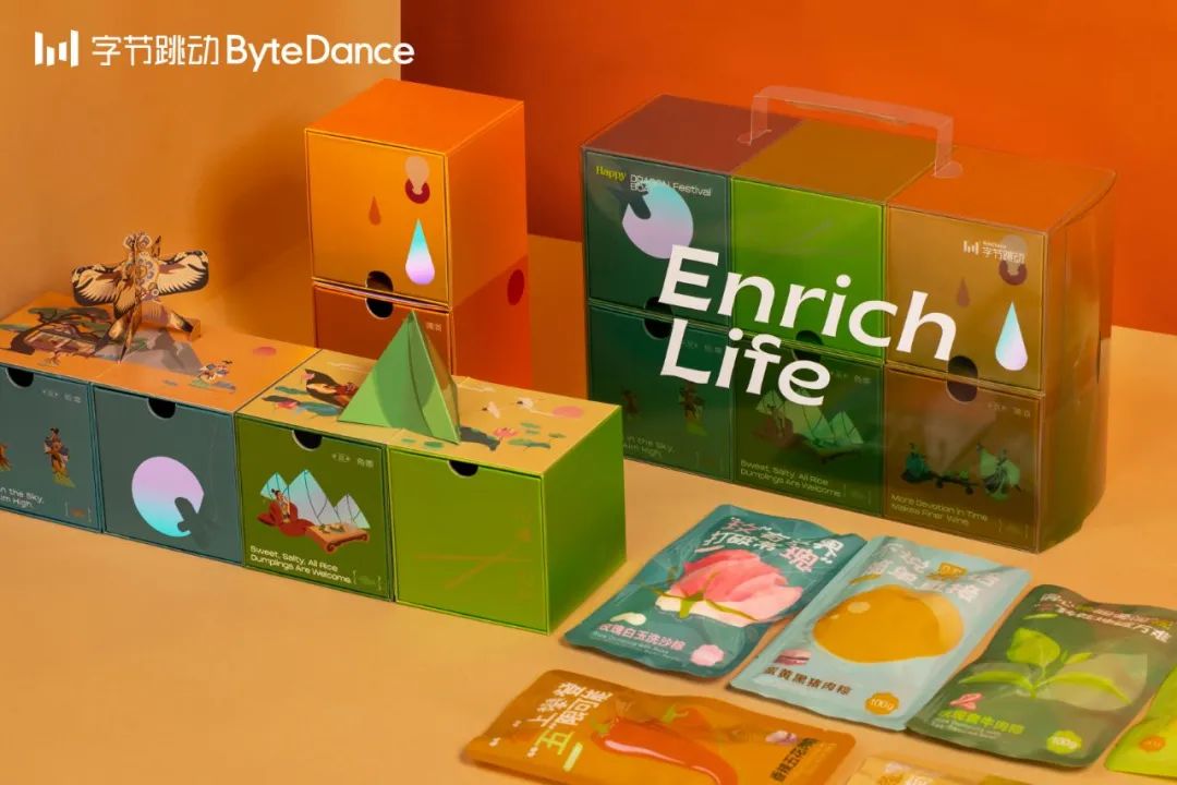 字節(jié)跳動(dòng)的禮盒顏色跳躍,很有設(shè)計(jì)感,很潮!